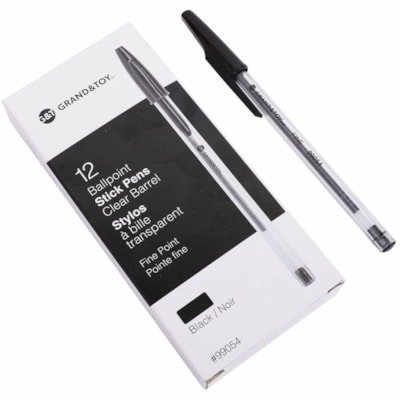 Grand & Toy Premium Ballpoint Pens, Black, Fine, 12/Box – Fine Round Pen Point – Black Ink – Black Barrel – 12 / Box