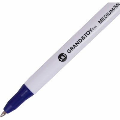 Grand and Toy Retractable Ballpoint Pens Blue Medium 1.0 mm 12/BX – 1 mm Medium Round Pen Point – Retractable – Blue Ink – White Barrel – 12 / Box