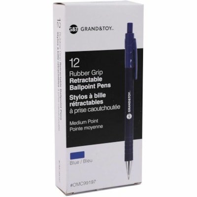 Grand and Toy Rubber Barrel Retractable Ballpoint Pens Blue Medium 1.0 mm 12/BX – 1 mm Medium Round Pen Point – Refillable – Retractable – Blue Ink – Blue Barrel – 12 / Box